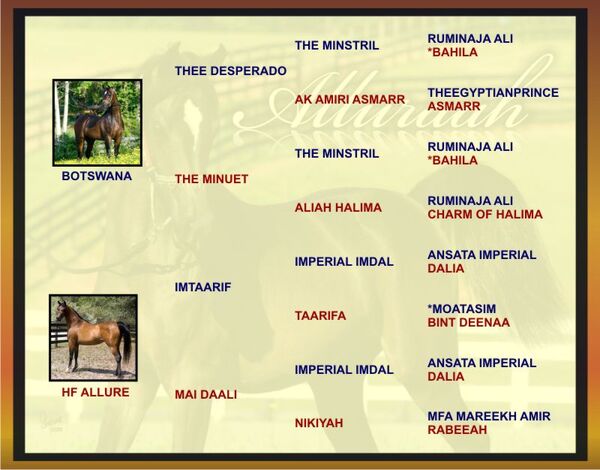 2010 Region 17 Champion Filly (Two Year Old Class) 2009 Top Ten Yearling Filly Egyptian Breeders Competition |